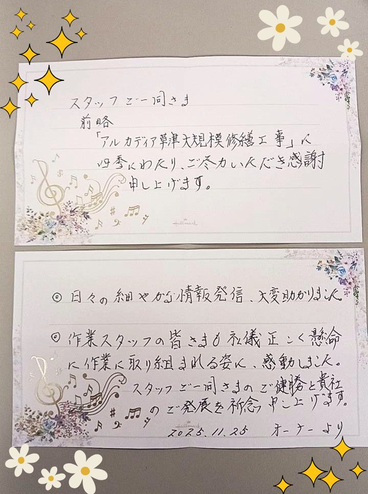 オーナー様より感謝のお手紙です🙌