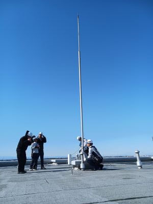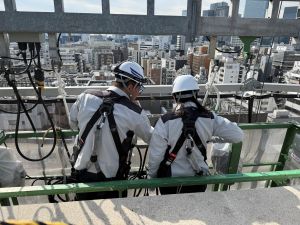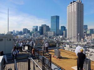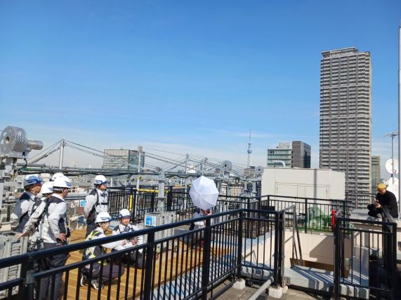 足場を登って屋上へ・・・寒いけどいい天気です🌞東京タワーも富士山も見えちゃいました🗻